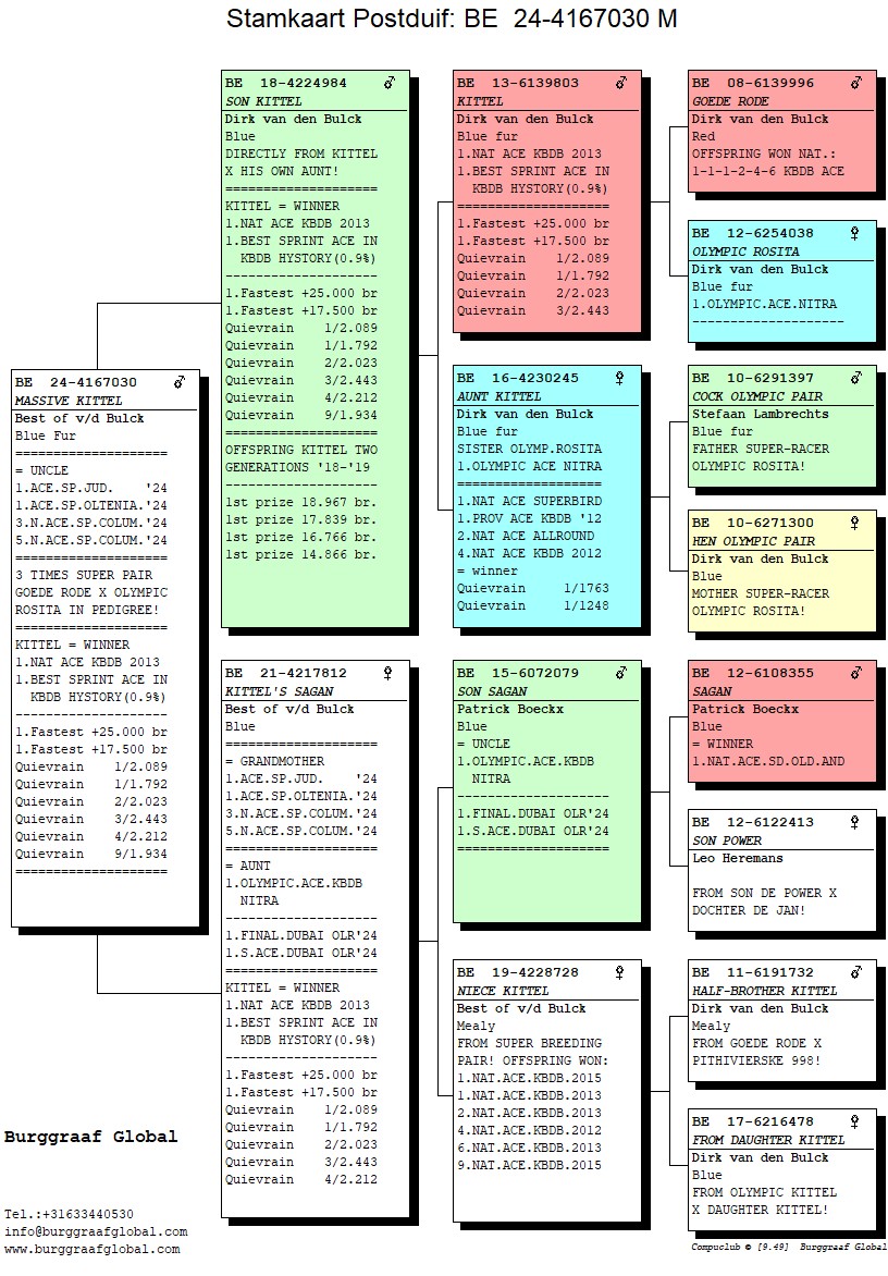 Afkomstig van zoon van Kittel. Totaal drie keer Goede Rode x Olympic Rosita in de stamboom!