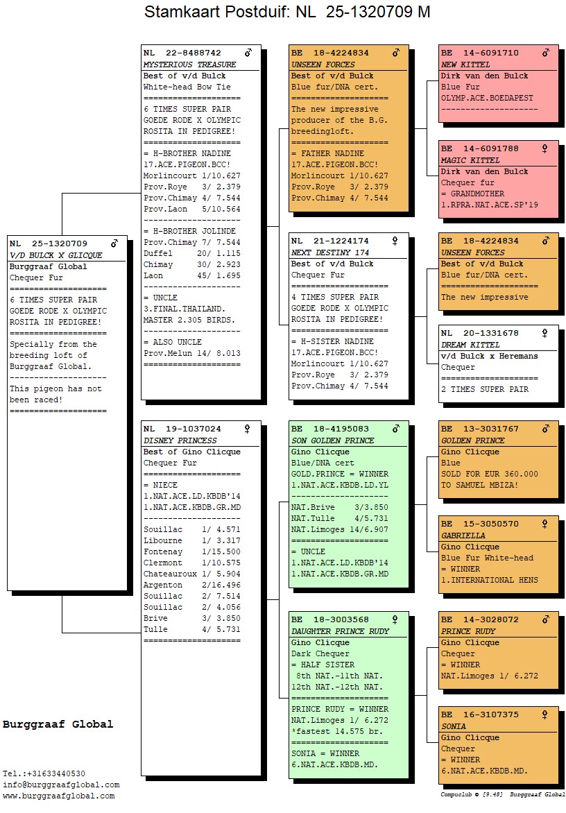 Een genetische goudmijn met bewezen nationale asduiven aan beide kanten van de stamboom.